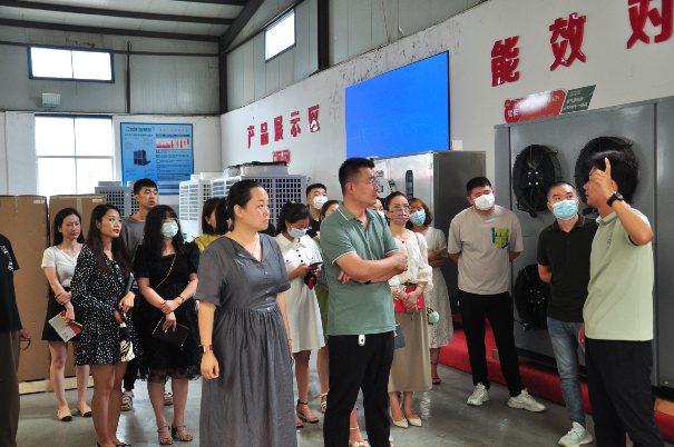 考察團一行(háng)參觀了(le)產(chǎn)品展(zhǎn)示區、生產(chǎn)車間和超低溫熱泵性能實驗室。項目部吳經(jīng)理向考察團介紹了(le)空氣源熱泵的運行原理、應用領域、經濟價值和社會效益,大家對熱泵產品的(de)安裝、使用等與吳經理進(jìn)行了(le)廣泛探討和交流。