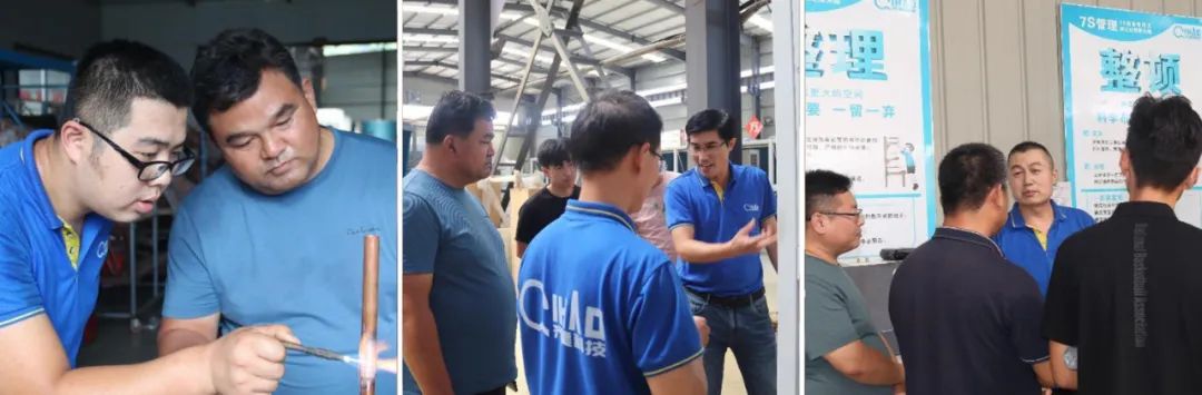 8月26日,為期4天的17c在线观看商(shāng)學院第11屆專業技能培訓班在公司車間會議室如期開課,來自省內外的分銷(xiāo)商技術骨幹20餘人參(cān)加了此次培(péi)訓。17c在线观看(hào)科技總經理範同春致(zhì)歡迎辭,生產部經理劉效輝主導了此次培(péi)訓課程,17c在线观看資深(shēn)理論講師和實戰老師(shī)則從產品運行原理、焊接理論培訓、安裝常(cháng)識培訓、售後知識培訓、焊接(jiē)實操、商檢測試、抽真空注氟等方麵對學員進(jìn)行了全方(fāng)位係統培訓。