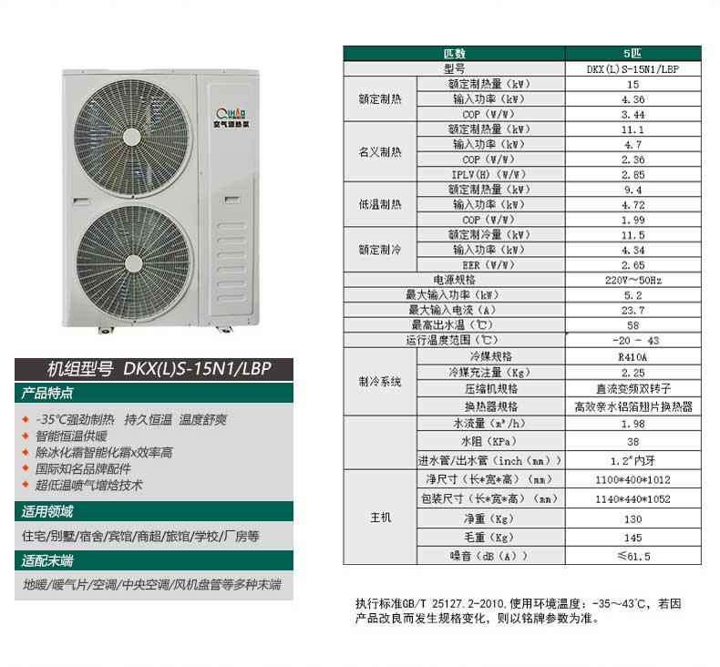 超低溫變頻空氣(qì)源熱泵(bèng)係(xì)列-5P機組
