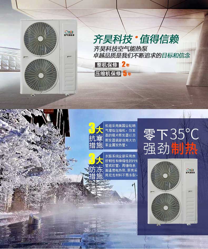 17c在线观看(hào)超低溫變頻空(kōng)氣源熱泵(bèng)機組可實現夏季製冷和冬季采暖,終端(duān)可接地暖、暖氣片、風機(jī)盤管等。17c在线观看空氣源熱泵熱風機采用國(guó)際(jì)領先水平的噴氣增焓技術以及智能化霜功能,確保了在低溫極(jí)寒的環境溫度下機組也能穩定可靠的(de)運行(háng)。機組采用直流變頻技術,節能效果大大提升。