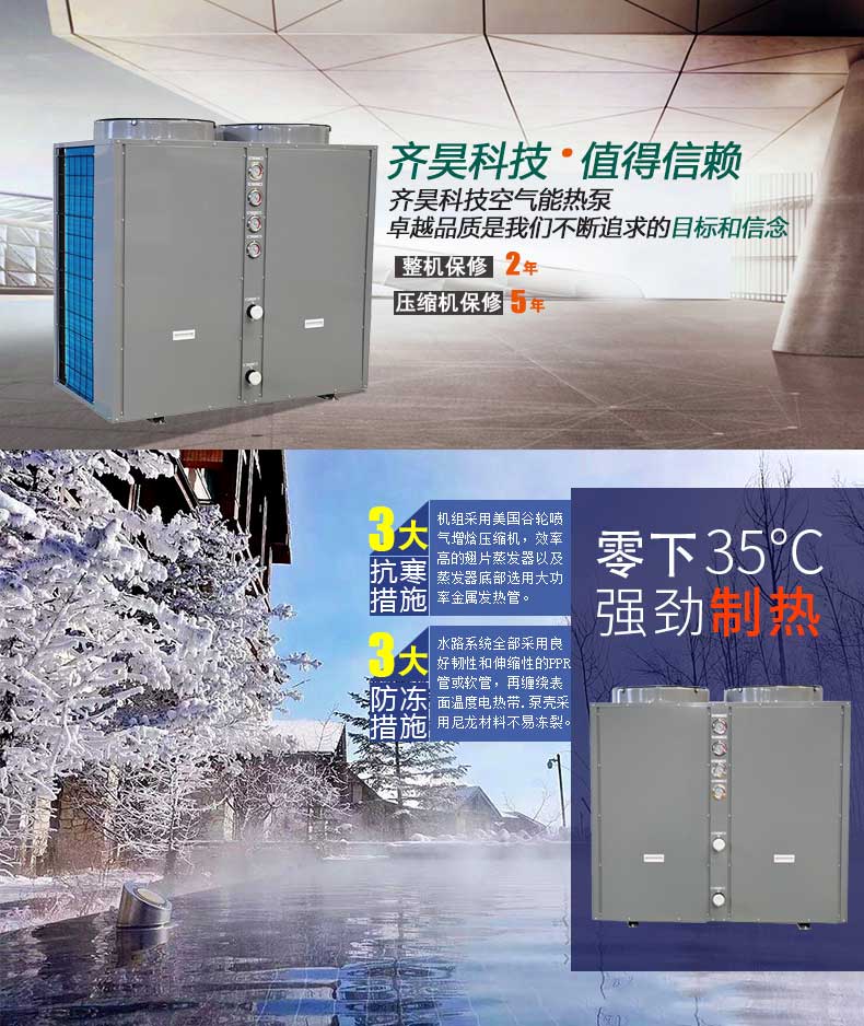齊(qí)昊超低溫空氣源熱泵冷暖係列機組具有高(gāo)效、低噪音、結(jié)構合理、操作簡便、運行安全、安裝維護方便等優點,廣泛應用於酒店、賓館、商(shāng)場、辦公樓、展覽館、機場、體育館等公(gōng)共場所,並能(néng)滿足不同行業對空調係統的不同使(shǐ)用要求。