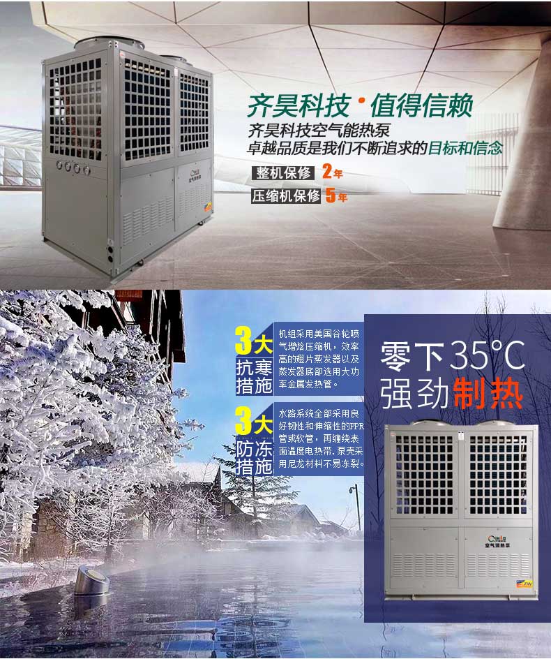 超低溫空氣源熱泵冷暖係列機組(zǔ),一台機器可同時實現製冷、製熱與熱水,一機(jī)三用,綜合能效高。17c在线观看超低(dī)溫空氣源熱泵冷暖係列機組采用國際領先水平的噴氣增焓技術,確(què)保(bǎo)了在低溫極寒的環境溫度下機組也能穩定可靠的(de)運行(háng)。機(jī)組采用智能除霜技術,化霜時間大大縮減,能(néng)效不衰減。機組(zǔ)零部件均采用國際一(yī)流品牌,安全可靠,使用壽命長達(dá)15年以上。