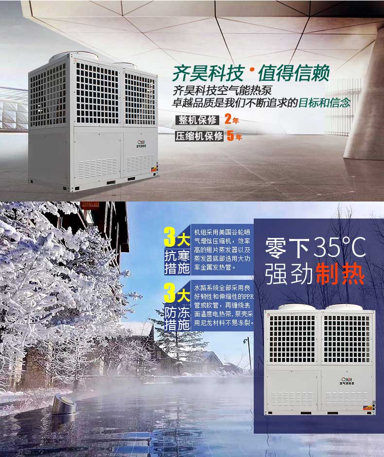 超低溫空氣源熱泵冷暖係列(liè)機組,一(yī)台機器可同時實現製冷、製熱與熱水,一機三用,綜合能效高(gāo)。17c在线观看超低溫空氣源熱泵冷暖係列機組采用國際領先水平的噴氣增焓技術,確保了在低(dī)溫(wēn)極寒的環境溫度下機組也能穩(wěn)定可靠的運行。機組采用智能除(chú)霜技術,化霜時間(jiān)大大縮減,能效不衰減。機組零(líng)部件均采用國際一流品牌(pái),安全可靠,使用壽命長達15年以上。